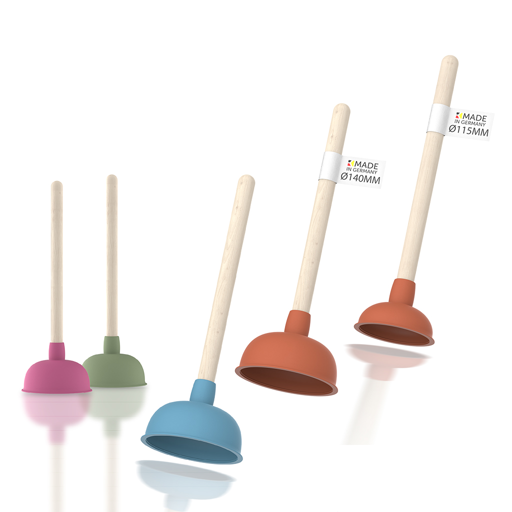 Bei instmaier findest du verschiedene Modelle an Pömpeln bzw. Saugglocken, die in Deutschland hergestellt wurden und sich somit Made in Germany nennen können. Unser kleiner Pömpel verfügt über einen Durchmesser von 115 mm und eignet sich daher vor allem für kleinere Öffnungen wie zum Beispiel Waschbecken. Darüber hinaus gibt es die bekannten größeren Varianten mit einem Durchmesser von 140 mm. Diese sind bei instmaier sogar in den Farben Orange, Grün, Pink und Blau verfügbar und sind besonders für größere Öffnungen wie Toiletten geeignet. Achte vorab darauf, dass der Durchmesser deines Pömpels mindestens so groß wie der verstopfte Abfluss ist, damit deine Verstopfung zuverlässig gelöst werden kann.